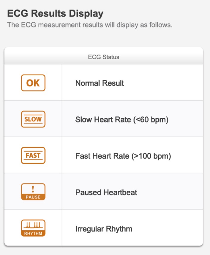 6 easy to interpret ECG status ranges